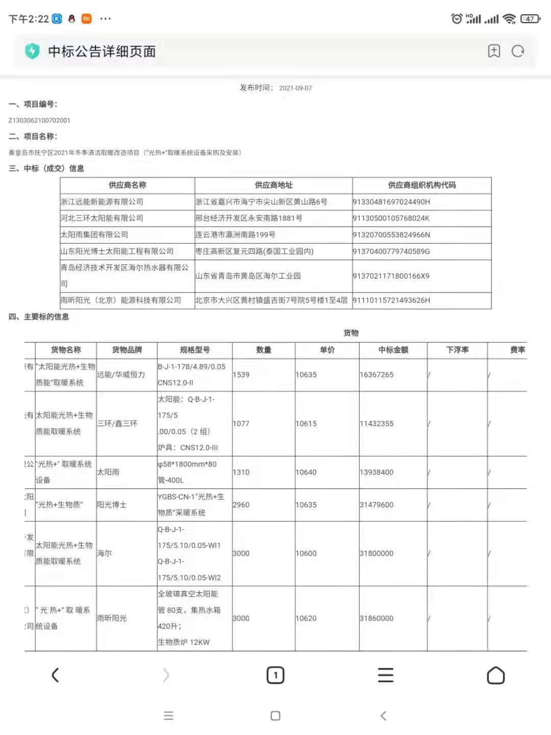 (北京)能源科技有限公司,成功中標秦皇島市撫寧區2021年冬季清潔取暖改造項目,項目金額3186萬元,助力國家碳中和、碳達峰早日實現,