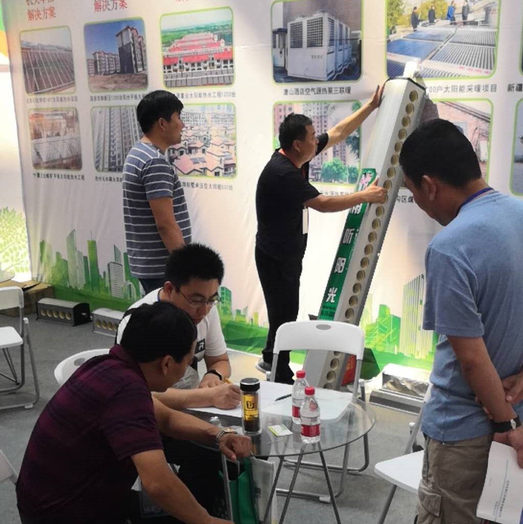 雨昕陽光公司與會參展,現場展示了公司太陽能熱水、空氣源熱泵、分布式光伏發電等煤改清潔能源取暖相關的最新產品和工程案例,受到了熱烈關注。作為京津冀地區“煤改電”項目的中標供應商,公司已經做好了準備,將全力以赴為甘肅“煤改電”項目貢獻自己的一份力量。